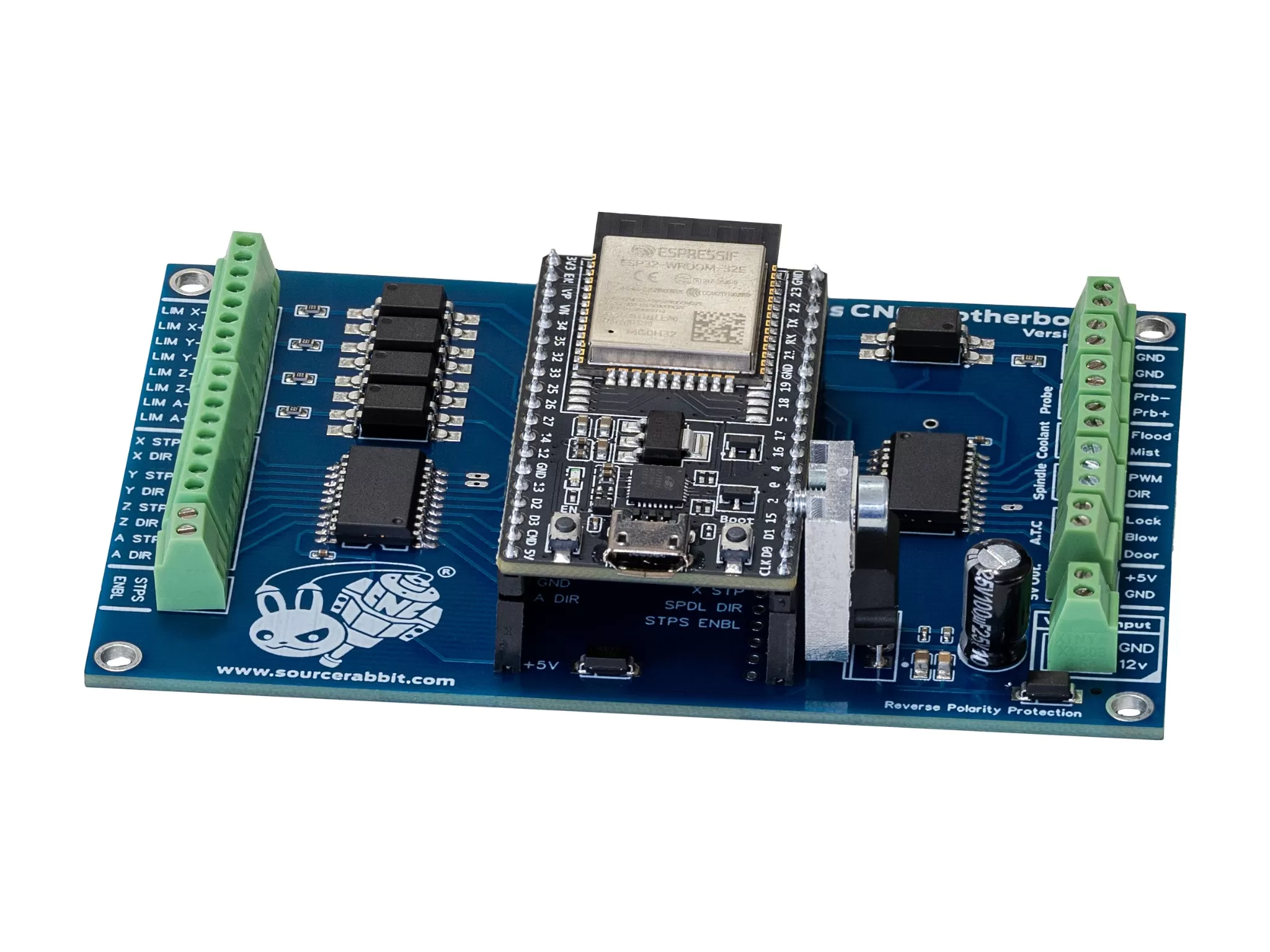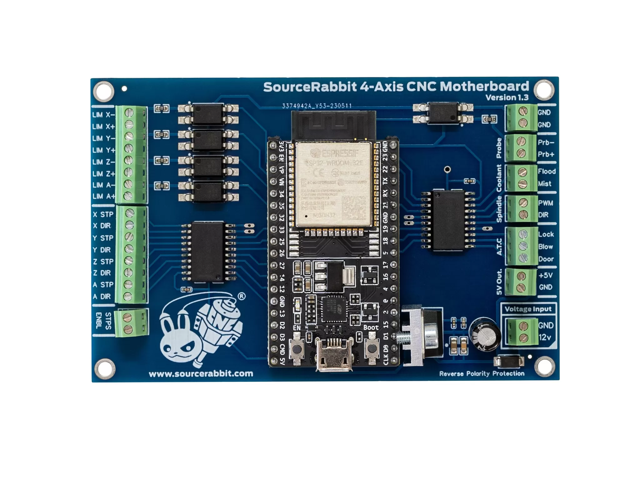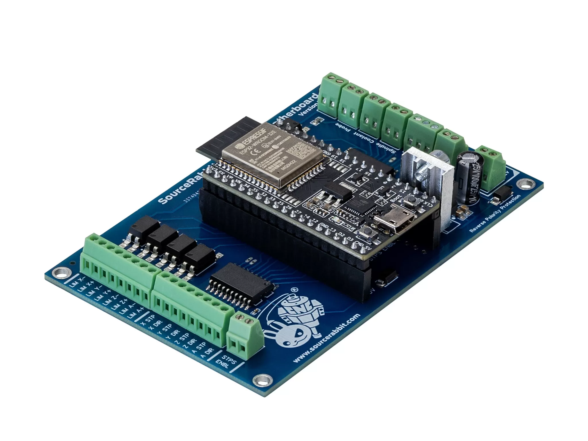 The 4-Axis CNC Motherboard comes fully assembled and with the GRBL firmware pre-installed. It is equipped with a dual-core Xtensa 32-bit LX6 microprocessor (ESP32) running at 240 MHz, capable of driving up to 4 stepper or servo motors with stable and clean 120 kHz Step/Dir pulses.