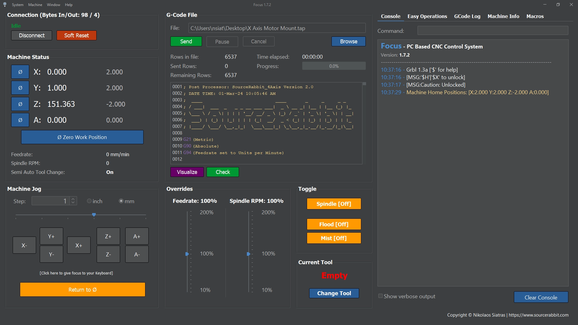 Focus is cross platform, compatible with all GRBL boards on the market, such as the 4-Axis CNC Motherboard, it has technical support and with the purchase of each license you obtain free access to all its subsequent versions.