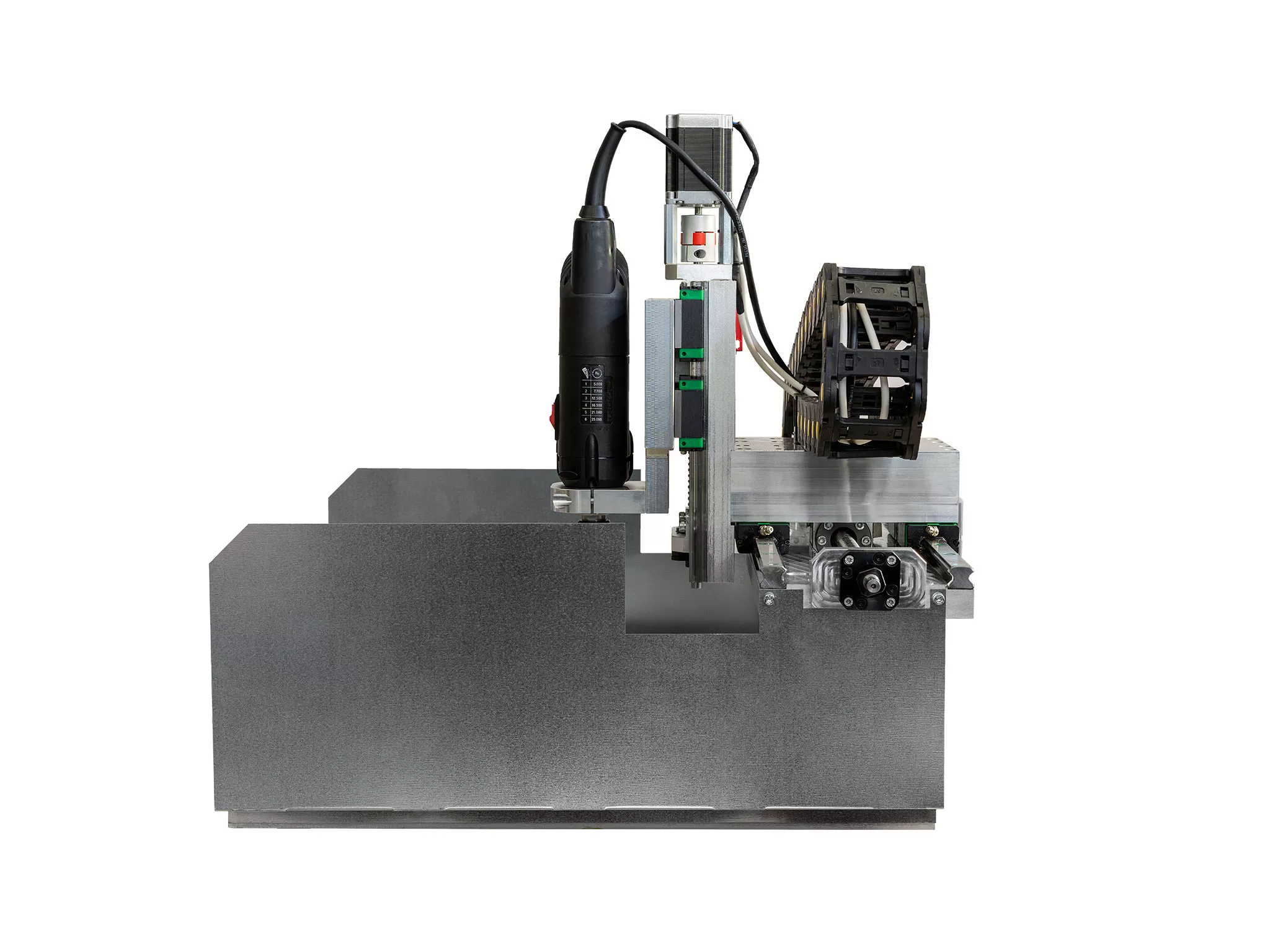 Quantums skeleton is made of solid aluminum able to hold vibrations produced by milling hard materials while the fastening points of the skeleton have been specially treated to ensure absolute verticality of the axes.